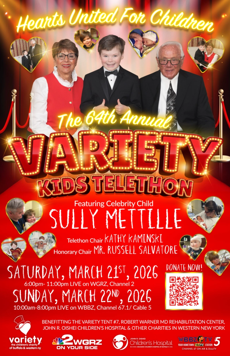 The 2026 Telethon will take place on Saturday, March 21st , 2026 on WGRZ, Channel 2 from 6pm-11pm and continues on Sunday, March 22nd, 2026 from 10am-8pm on WBBZ, Channel 5” as well as streaming online. Please watch and support the kids right here in WNY!