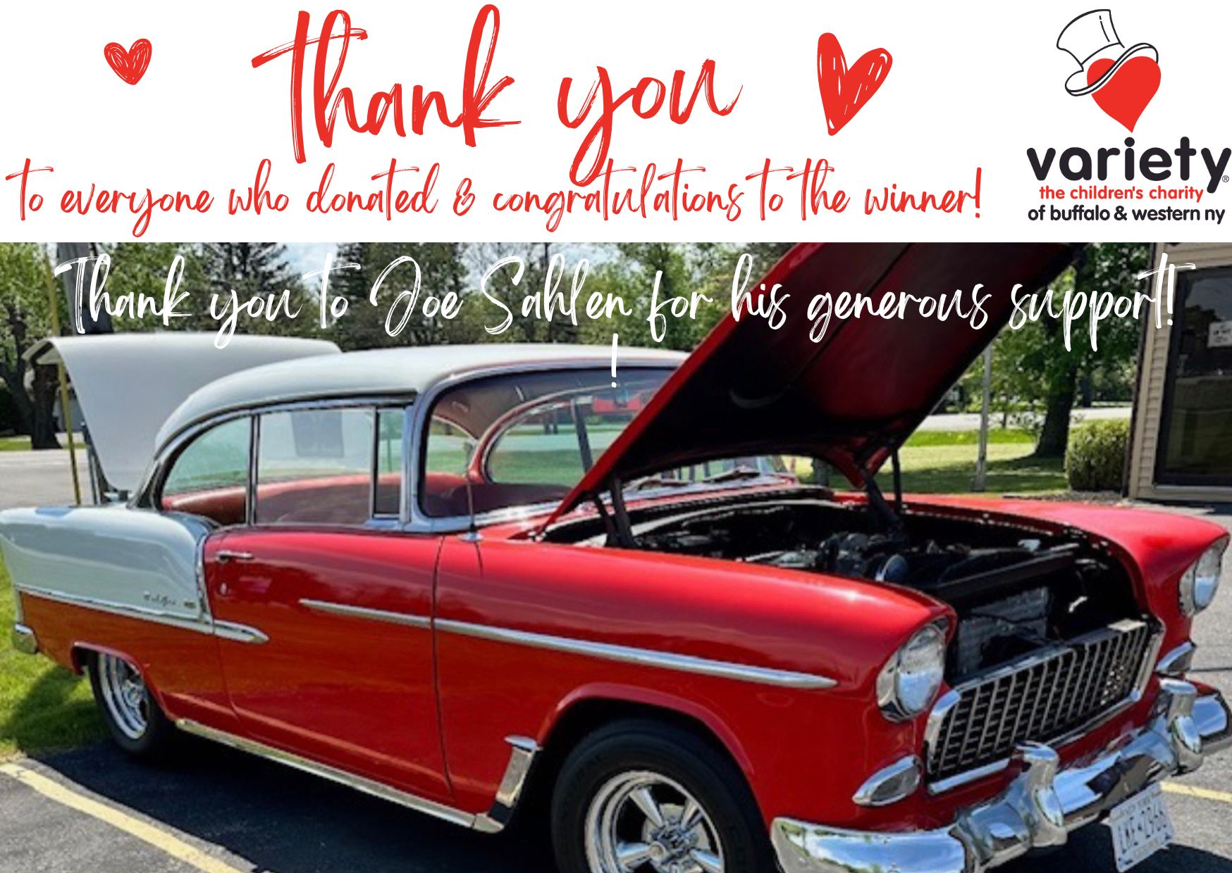 Thank you to Mr. Joe Sahlen for his extreme generosity. And, thank you to everyone who donated & supported the 1955 Chevy Bel Air Fundraiser for the Variety Kids right here in Buffalo & WNY! We thank you from the bottom of our hearts! ❤️