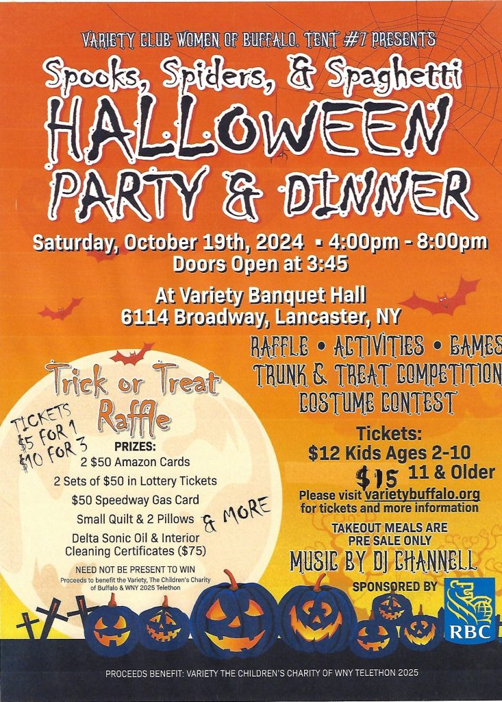 Join us on Saturday, October 19, 2024 from 4pm-8pm at Variety Club (located at 6114 Broadway, Lancaster NY 14086)