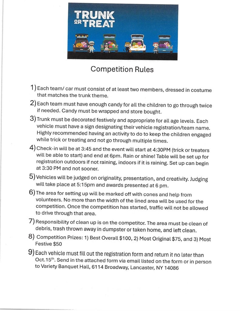 Sign up for our TRUNK or TREAT! Details noted below! Join in on the fun, today!